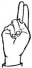 На ћирилици написано ДРИНКА ШАРАНОВИЋ састоји се из 15 слова [?]. Исписано ћириличном једноручном азбуком за глувонеме: